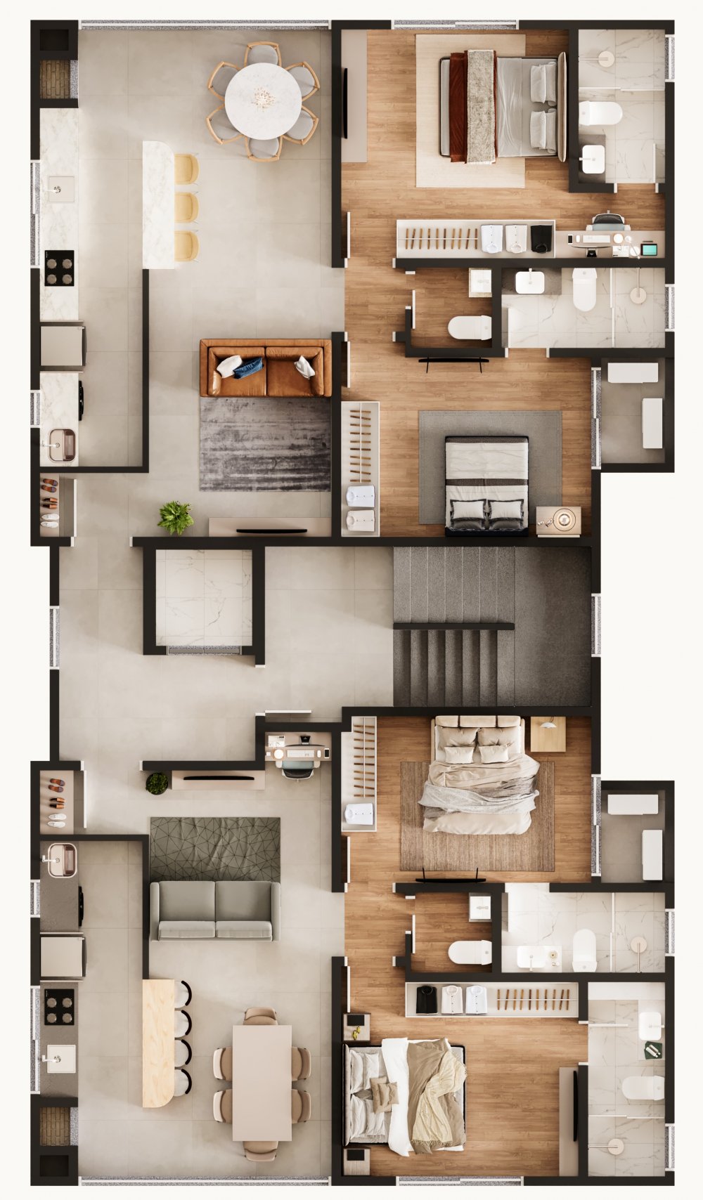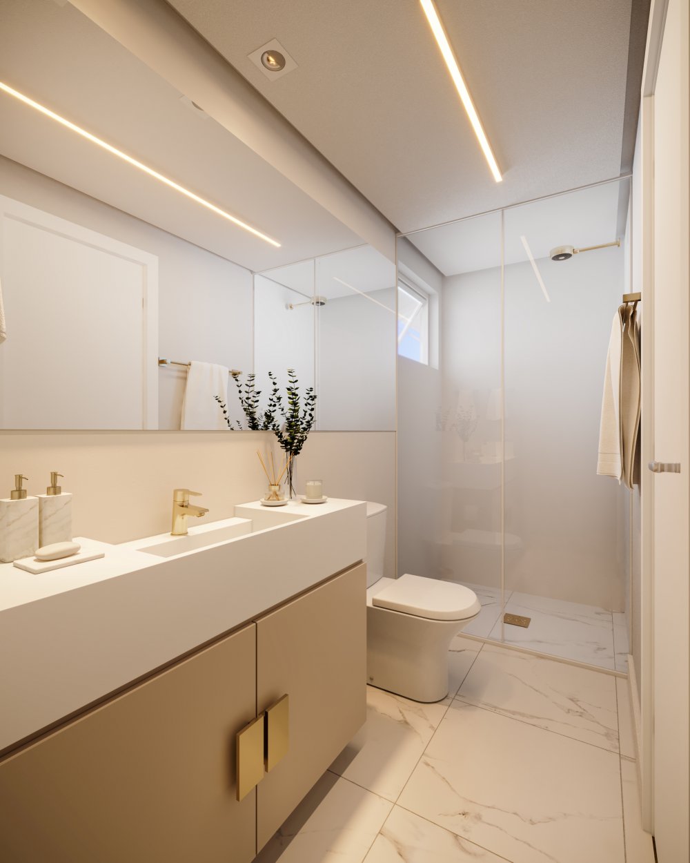 Vários ítens de alto padrão como toalheiro térmico, infra pra água quente, piso vinílico nos quartos, gesso rebaixado.