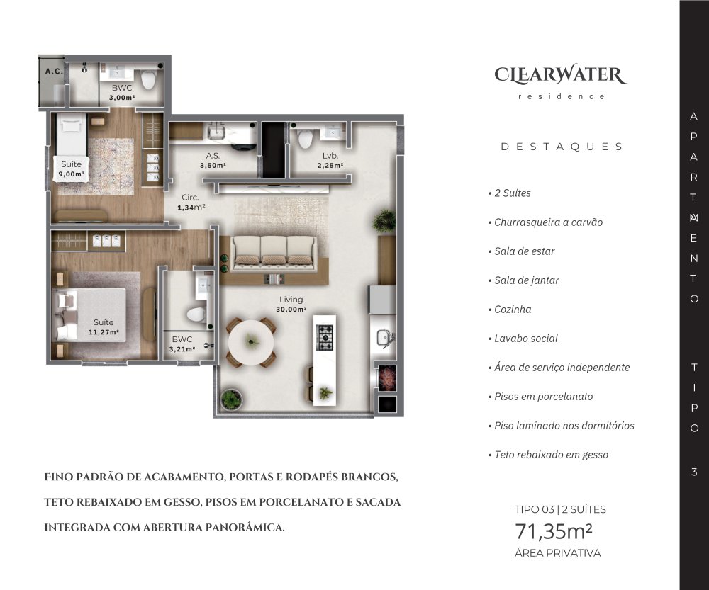 Área Privativa: 71,35 m²